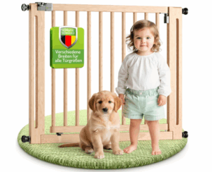 - Komfort im Alltag: Ein gutes Türschutzgitter lässt sich mit einer Hand bedienen, schließt automatisch und bietet eine ausreichend breite Durchgangstür.
